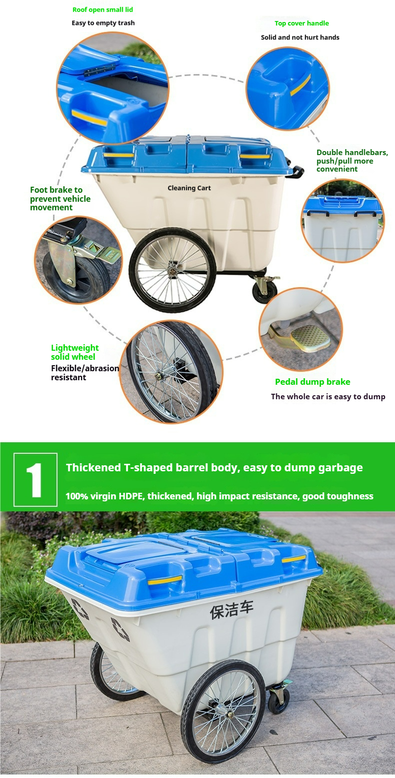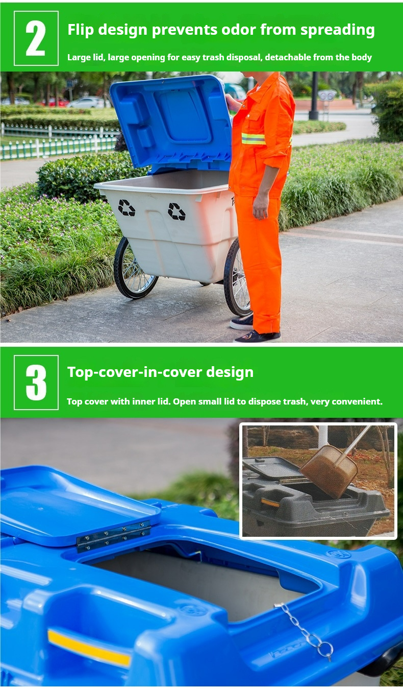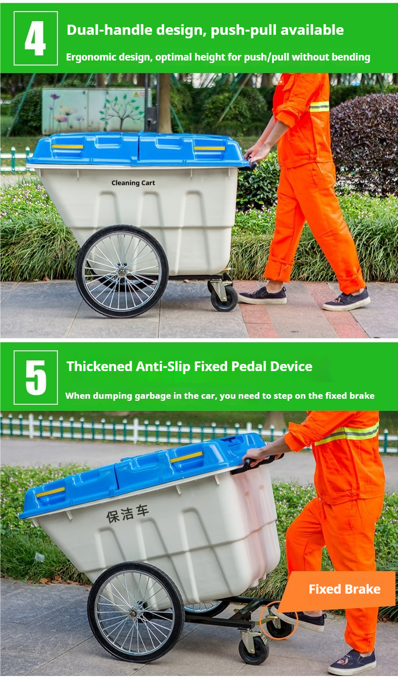 Packing list:1Sanitation Collection Truck Multi-Functional Handcart Garbage Truck with Lid 440L Sanitation Truck