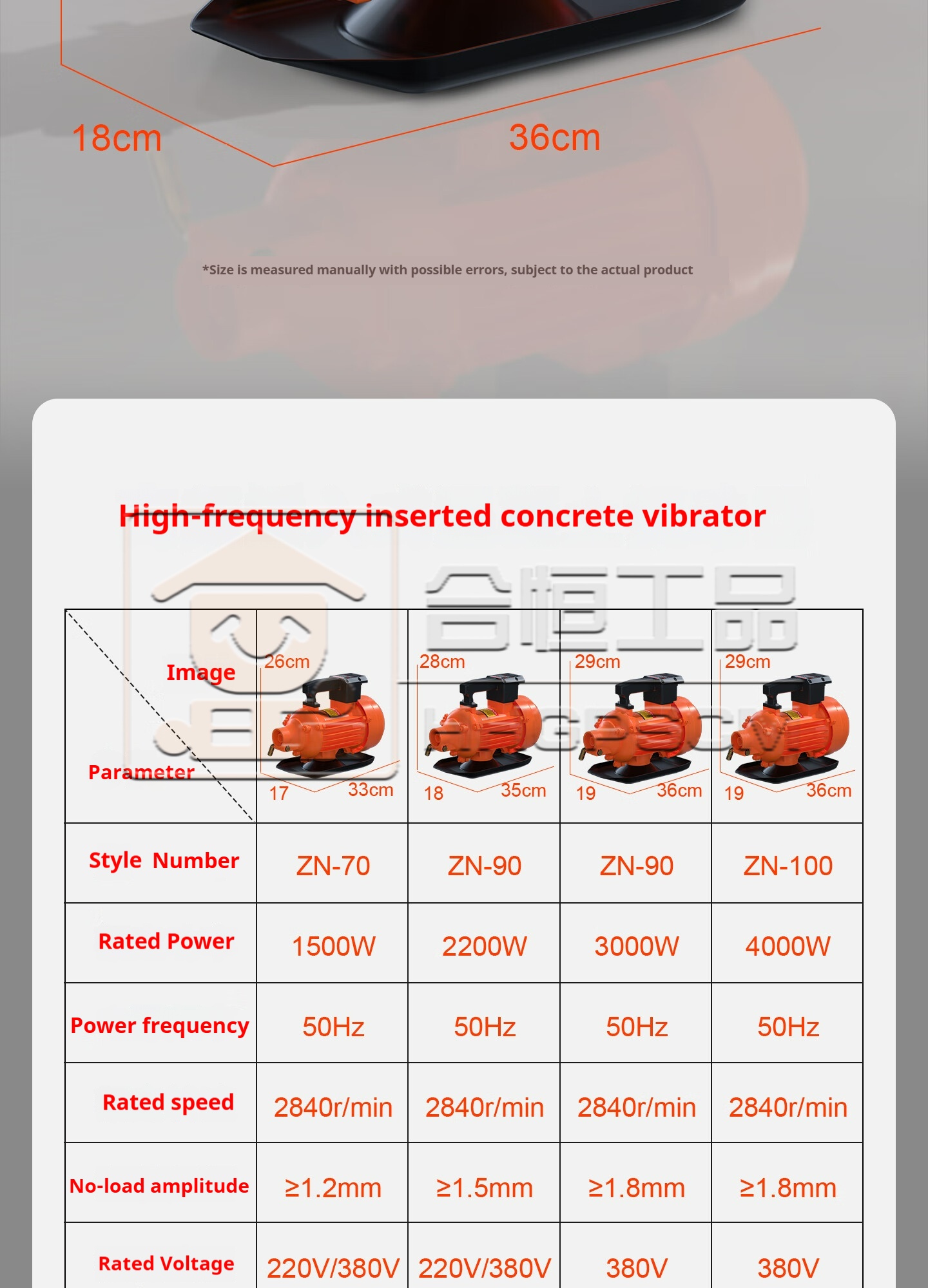 Packing list:1Plug-in Concrete Vibrator Single-Phase/Three-Phase Concrete Vibrator High-Power Construction Site Cement Vibrator Motor