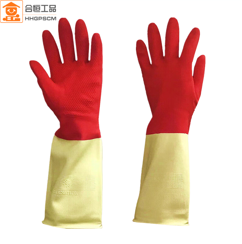 合恒工品 双色乳胶手套 橡胶手套 31cm 65g乳胶不加绒