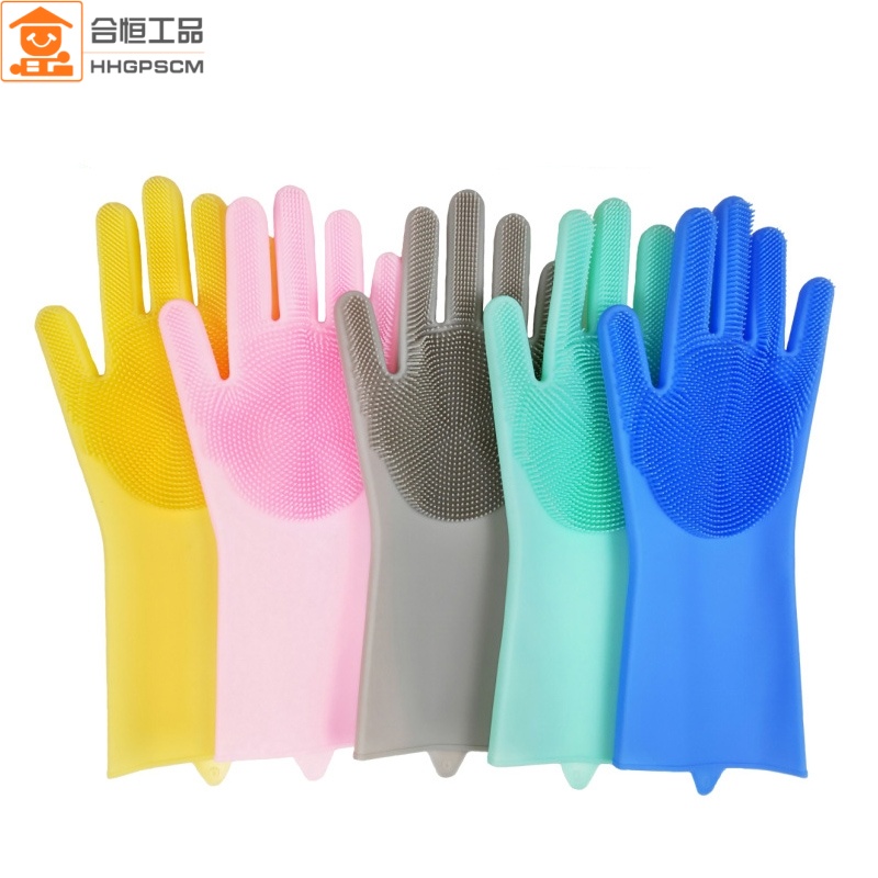 合恒工品 硅胶耐烫洗碗手套 黄色粉色灰色绿色蓝色L