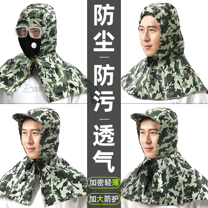 透气迷彩布防尘风帽装卸搬运工男女加厚耐磨耐脏牛仔布披肩帽