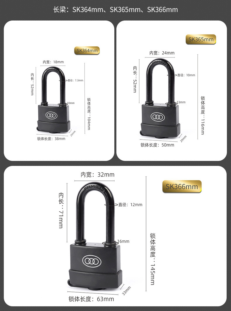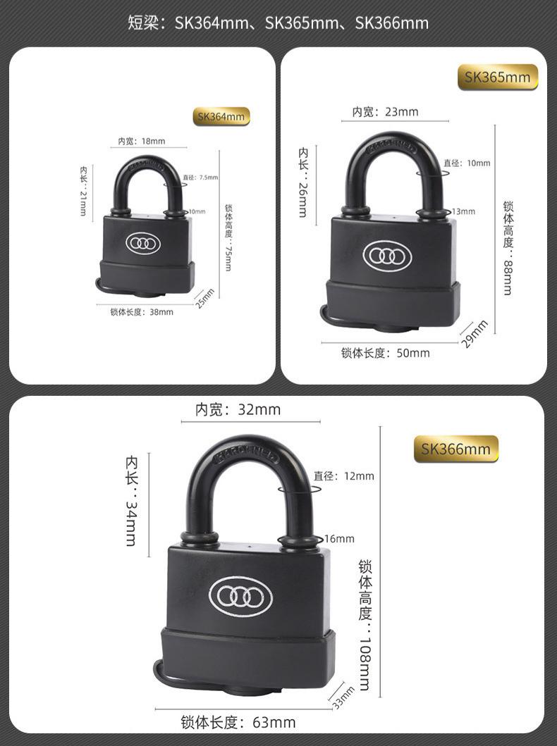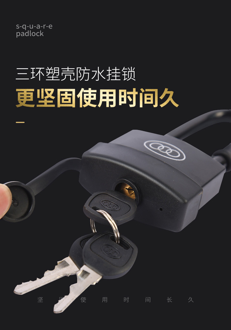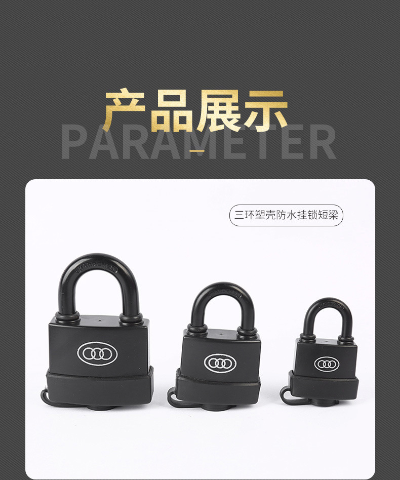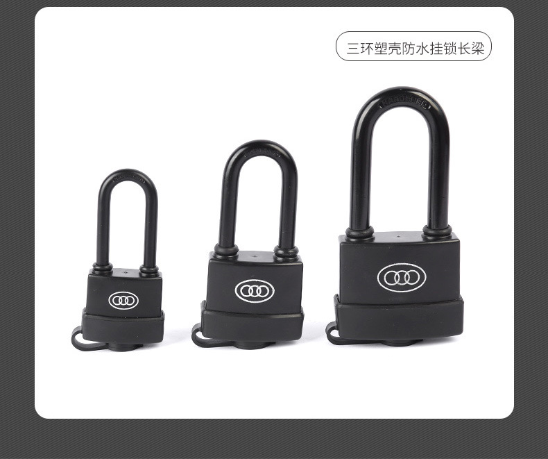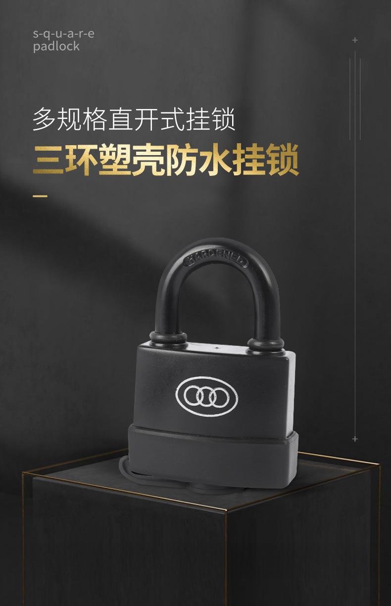 包装清单:1三环挂锁防水锁 户外锁塑壳挂锁通开互开锁长柄长梁锁头锁扣