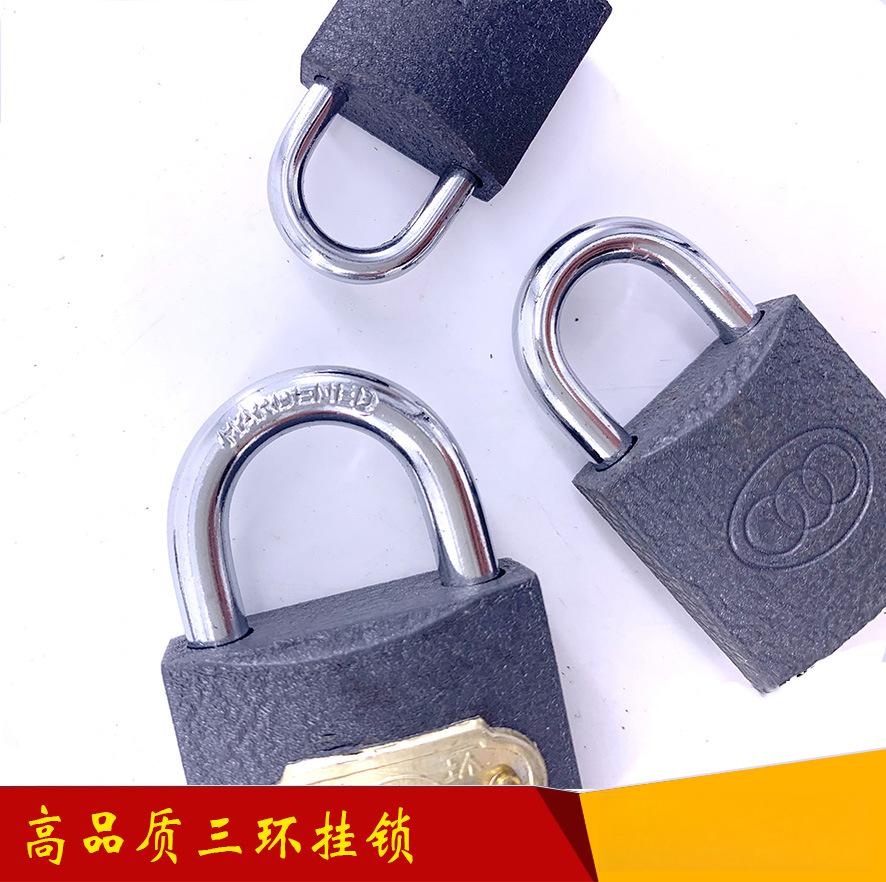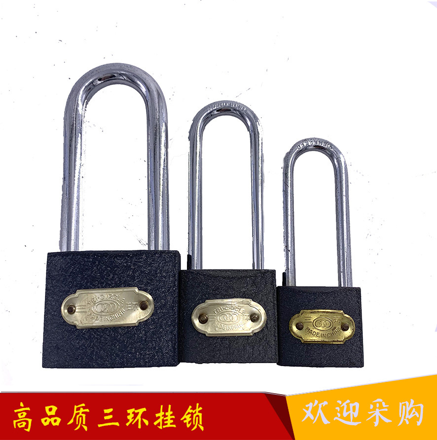 三环挂锁 柜仓库柜门锁头 房门长梁厚版铁挂锁
