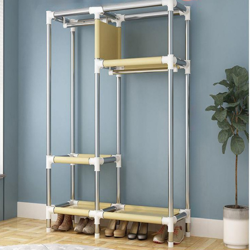 合恒工品布衣柜 家用卧室简易柜钢管加粗固组装全钢架子衣橱收纳出租屋衣柜