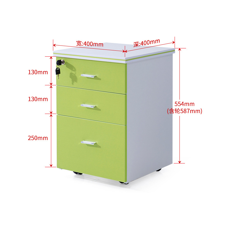 移动办公资料柜子储物文件柜 床头三抽屉活动柜木质带锁可定制
