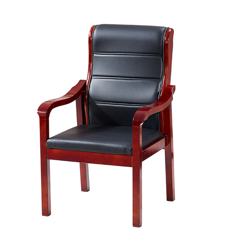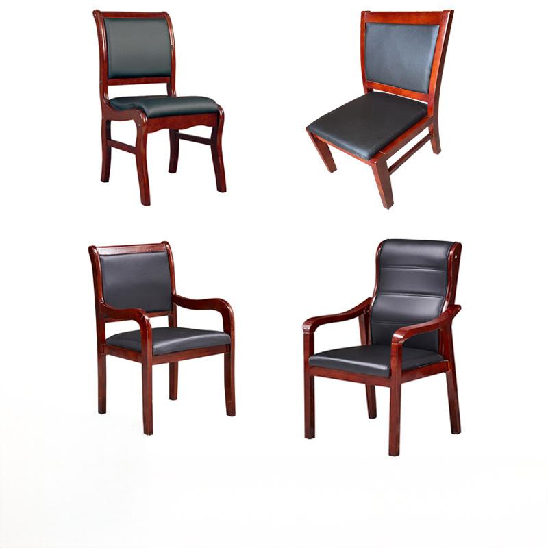 实木办公会议椅 四脚椅子牌室麻将皮椅子带扶手培训职员椅可定制