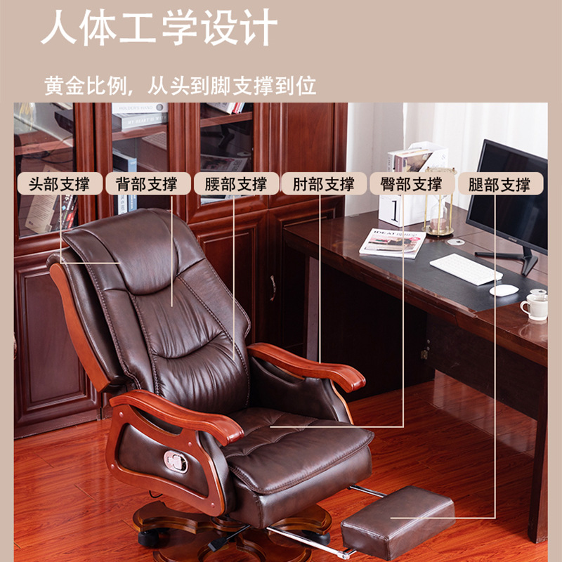 真皮老板椅 可升降旋转实木电脑椅 可躺牛皮办公椅可定制