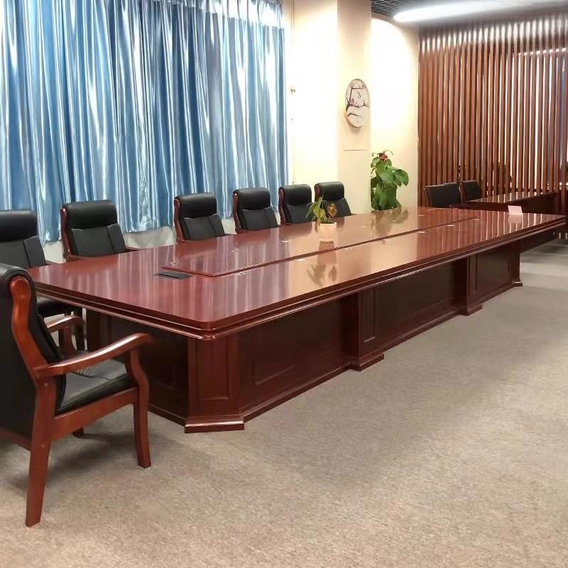 长方形条形中式办公家具厂家实木木皮会议桌大型会议桌油漆会议桌可定制