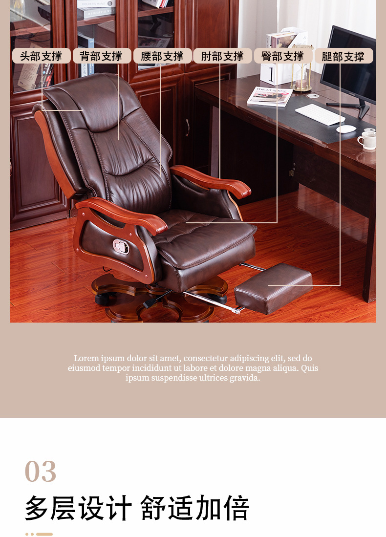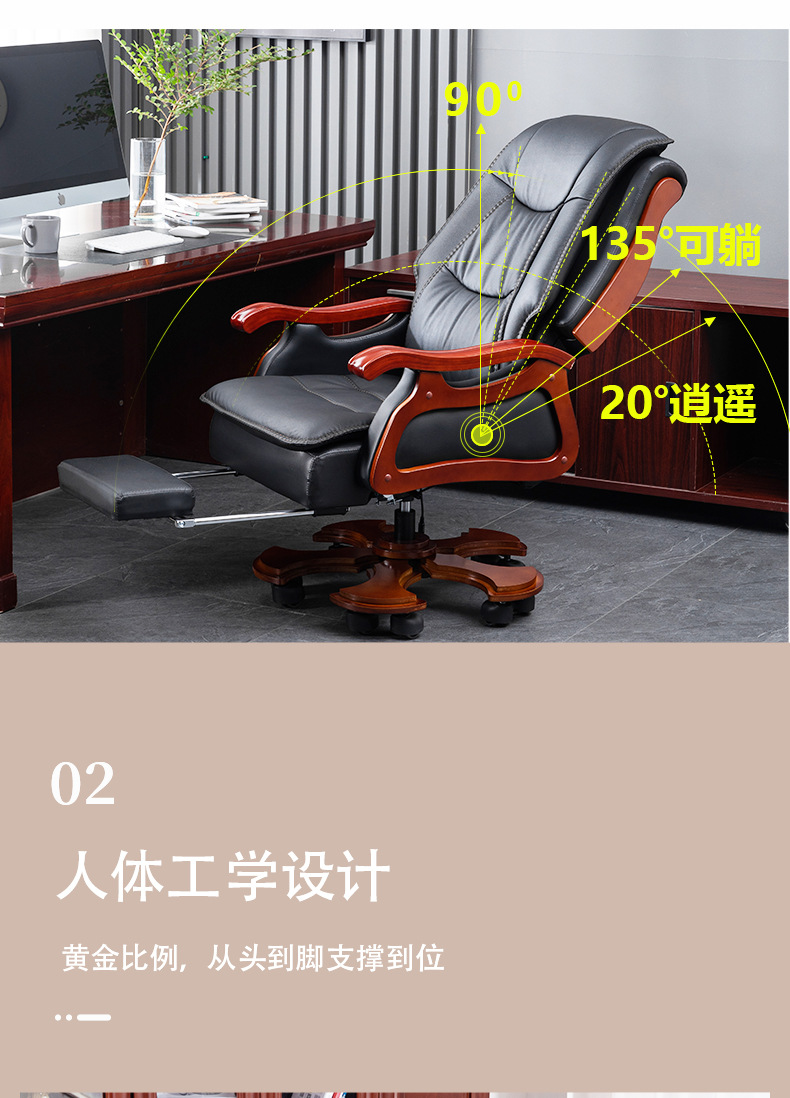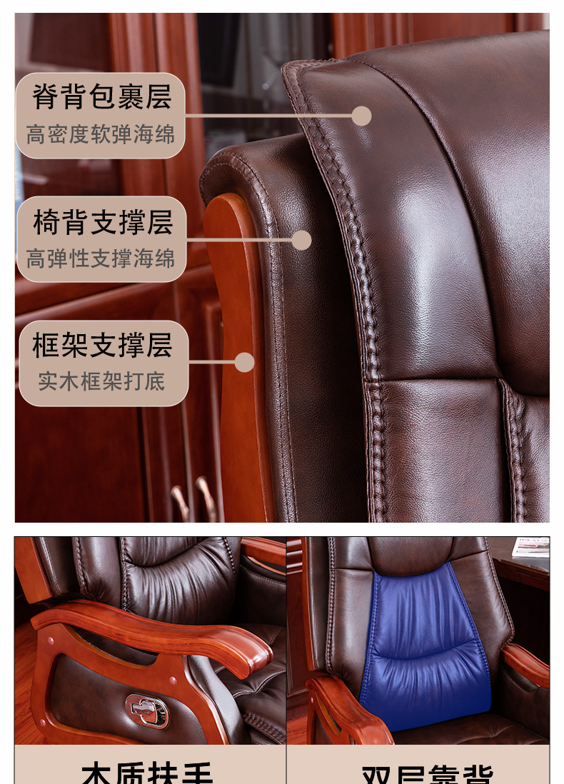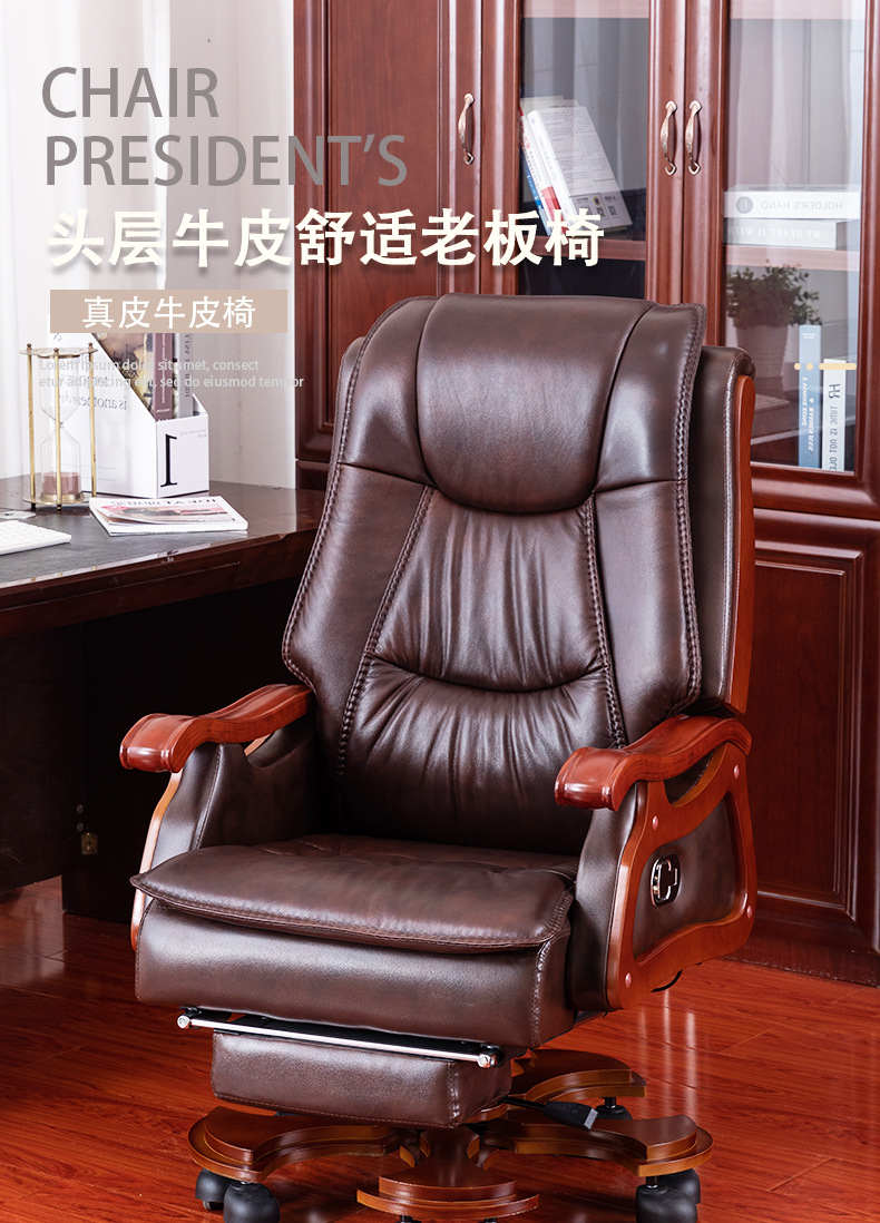 商品名称:真皮老板椅 可升降旋转实木电脑椅 可躺牛皮办公椅可定制