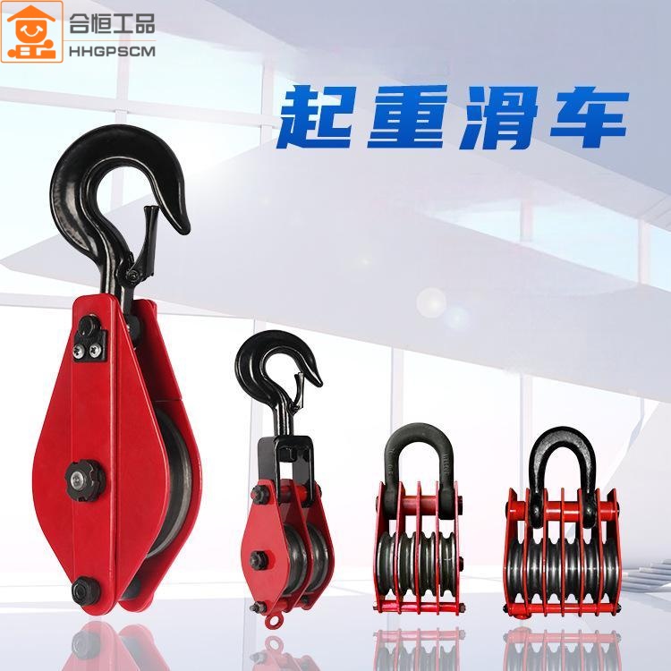合恒工品单轮吊钩盘石单轮起重滑车多吨位开口吊钩链环铁滑车国标吊装滑车滑轮组