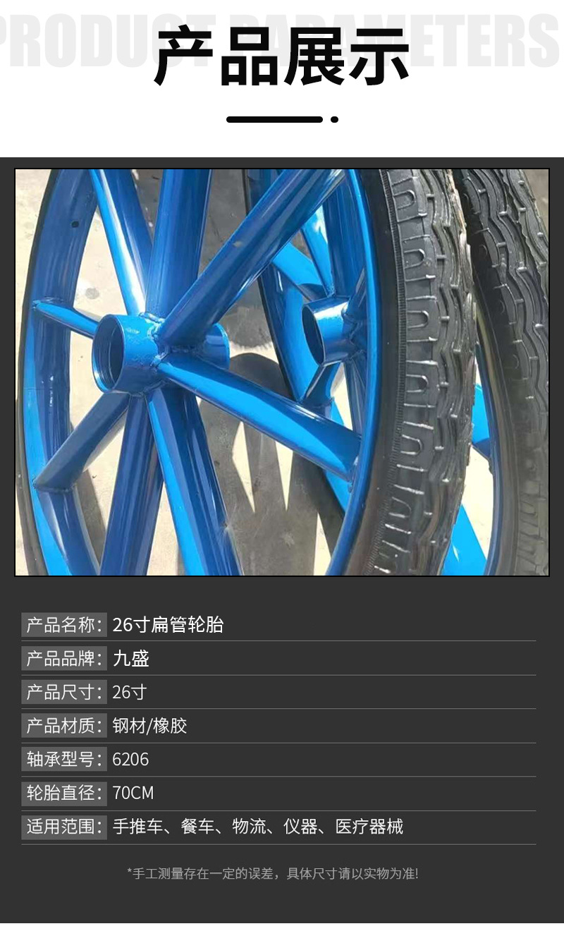 包装清单:1乐万佳工地手推车轮胎26×21/2劳动车实心轮子板车斗车架子人力车钢圈