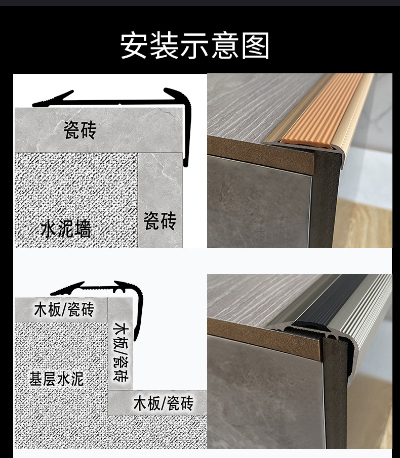 包装清单:1铝合金楼梯防滑条幼儿园地板压条室外踏步台阶户外包收边防撞护角