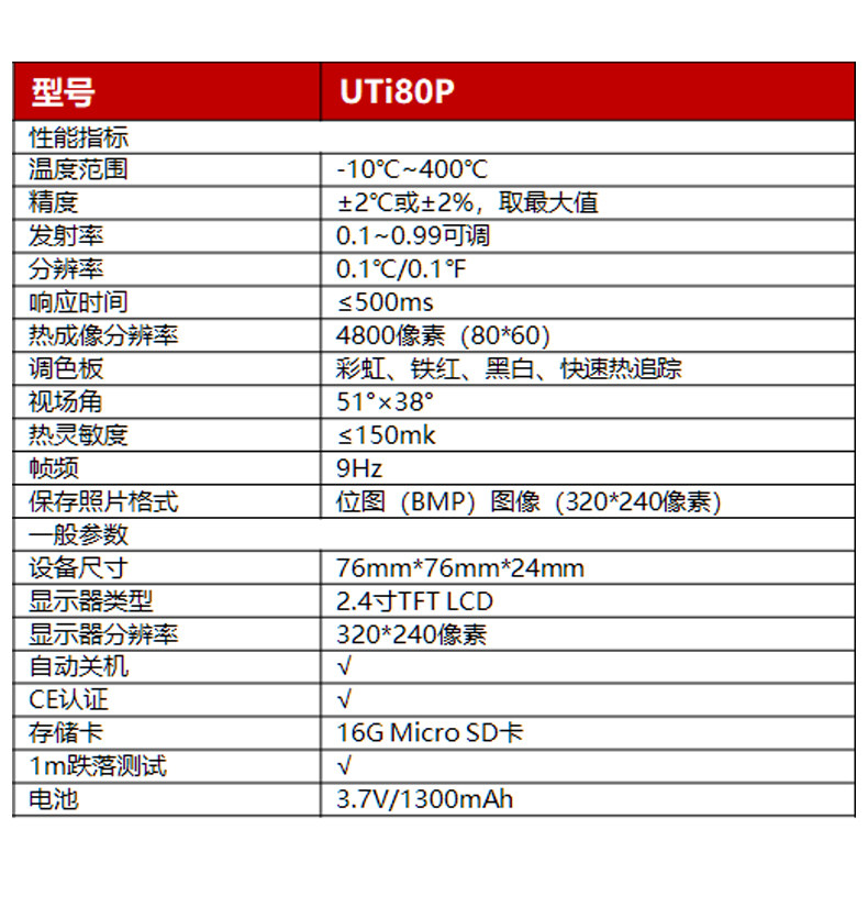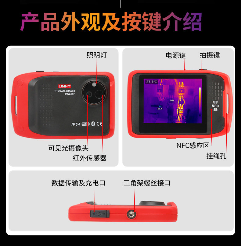 商品名称:优利德UTi260T口袋型热成像仪红外线测温仪高精度热像仪高清便携