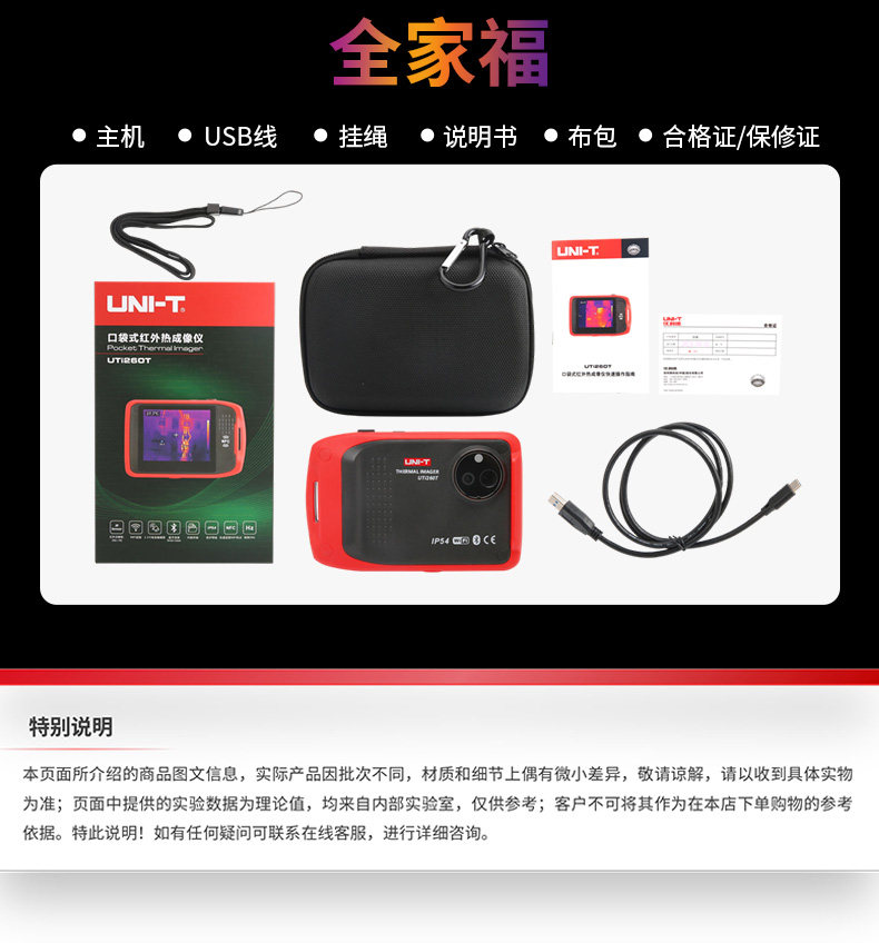 包装清单:1优利德UTi260T口袋型热成像仪红外线测温仪高精度热像仪高清便携