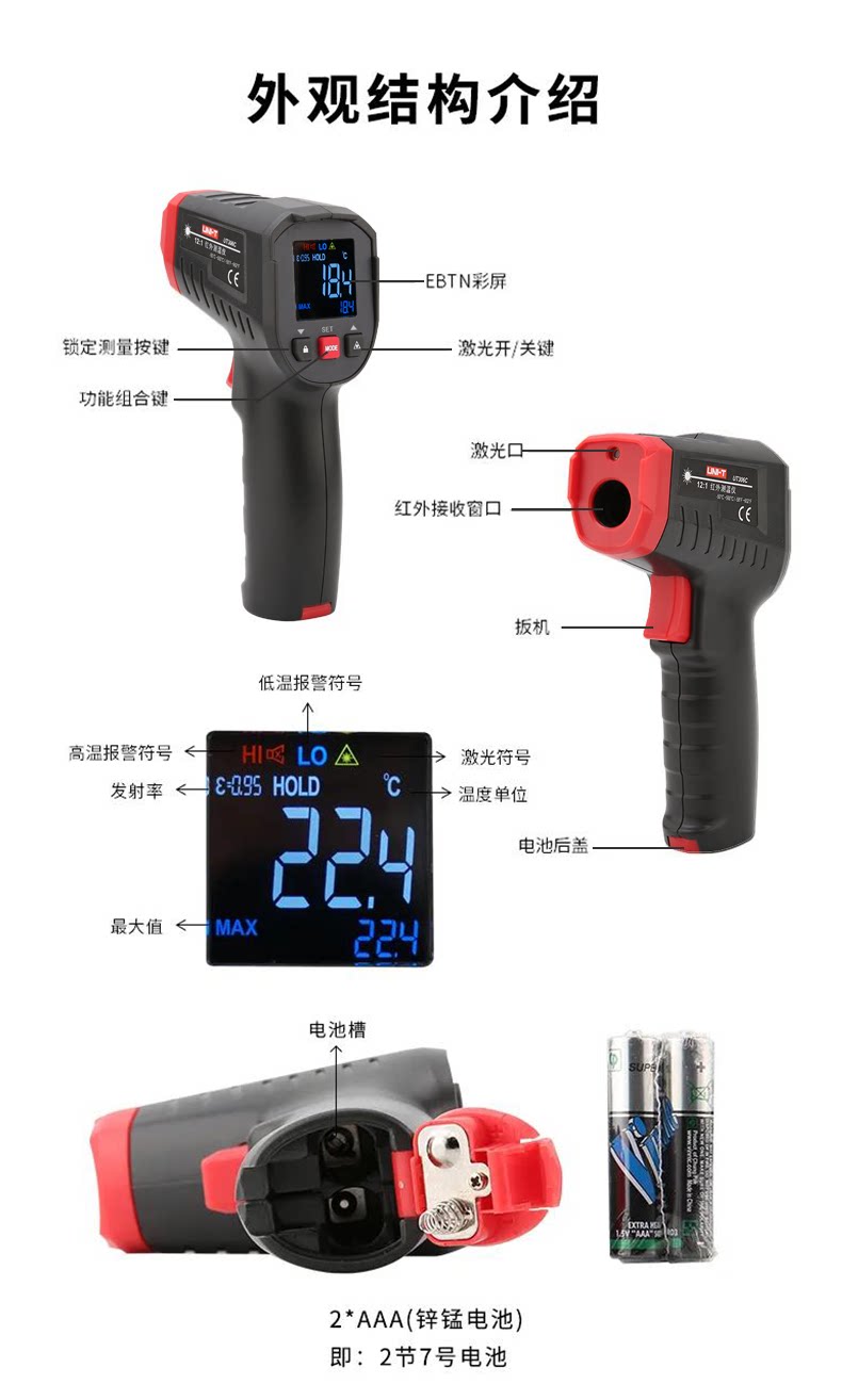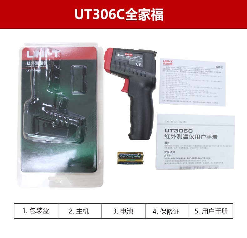 包装清单:1优利德UT306C高精度测温仪红外线测温枪商用水厨房烘焙油温枪