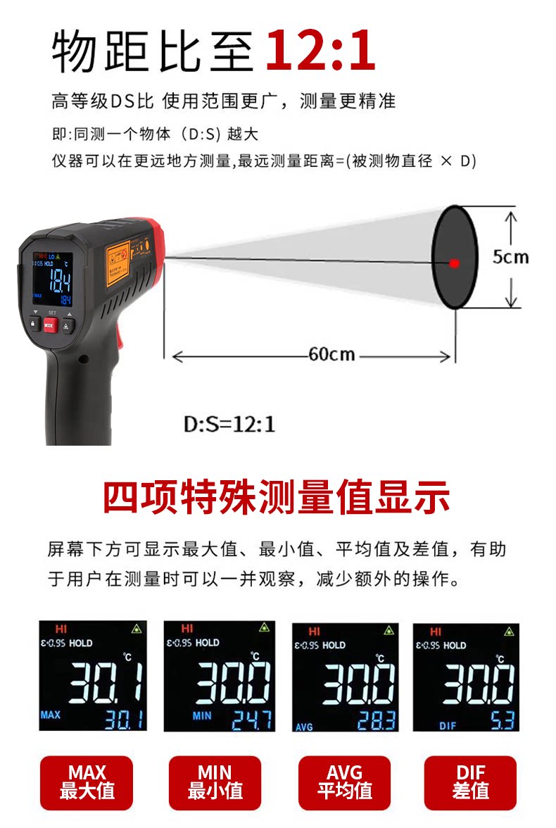 商品名称:优利德UT306C高精度测温仪红外线测温枪商用水厨房烘焙油温枪