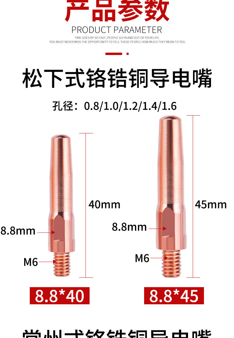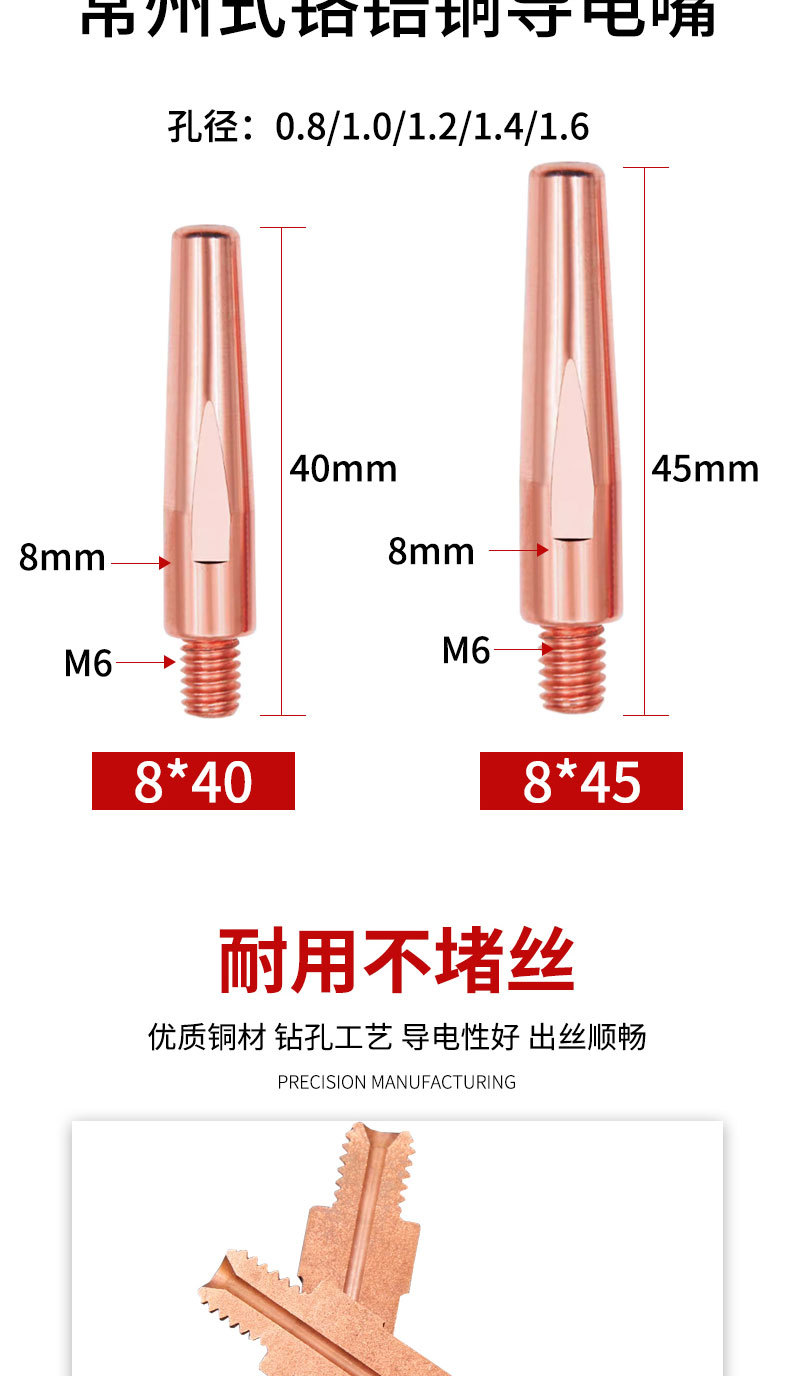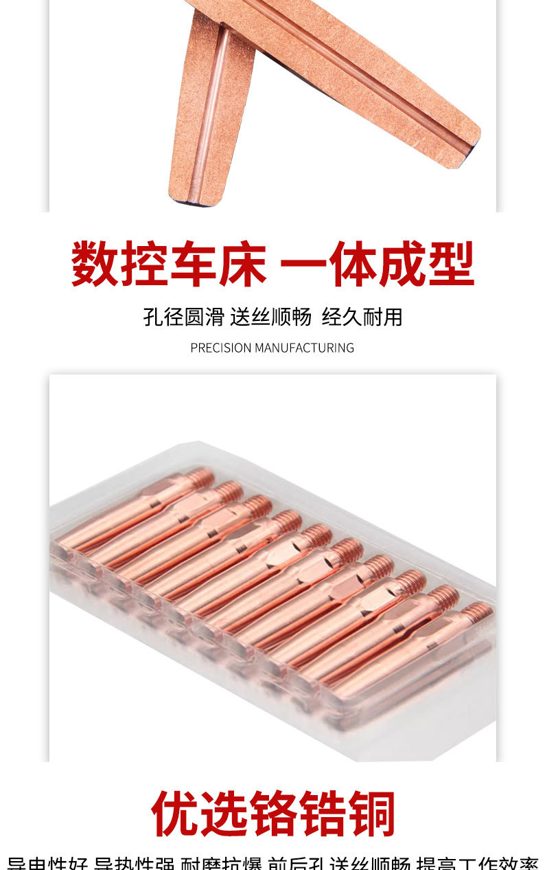 包装清单:18.8级铬锆铜导电嘴M6气保焊枪精车导丝嘴紫铜加重机器人送丝咀