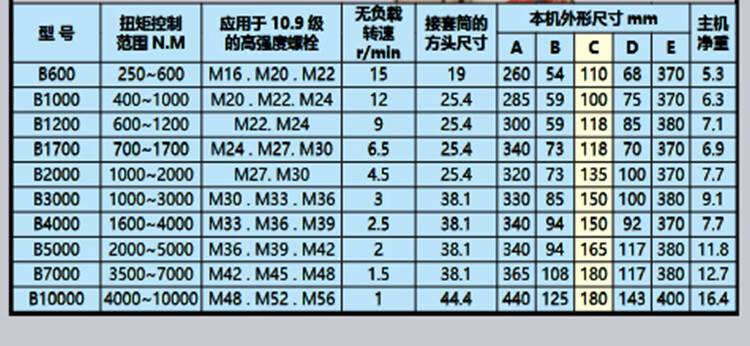 商品规格:B10000 4000~10000NM