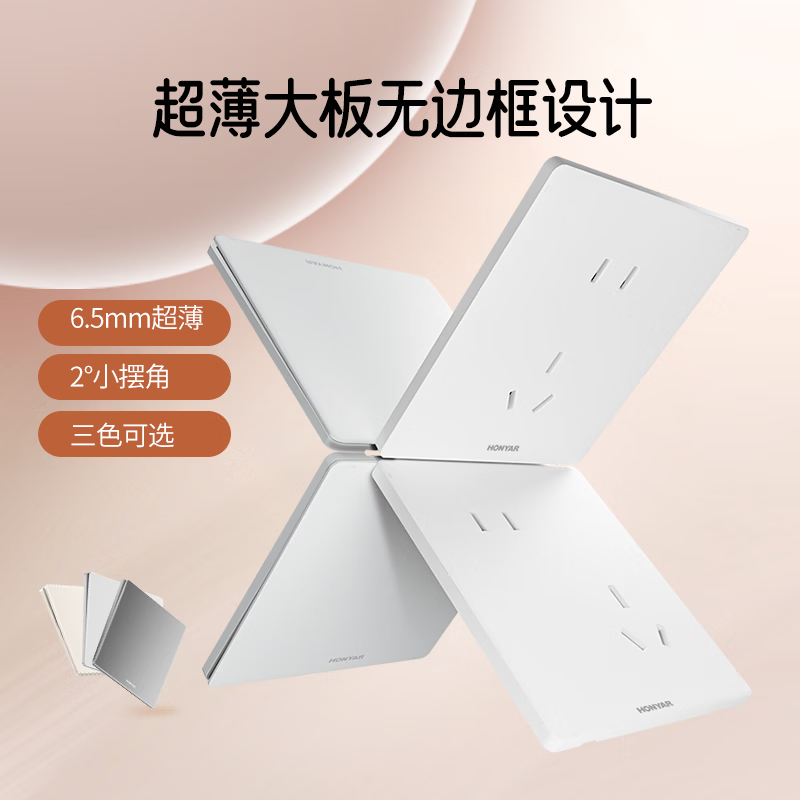 现货 鸿雁 开关插座面板超薄无边框86型暗装一开五孔