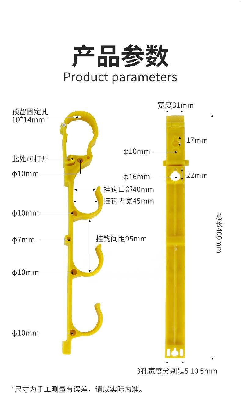 商品名称:悬挂电缆挂钩悬挂三连钩工地矿井隧道电缆电线挂钩塑料钩子绝缘钩
