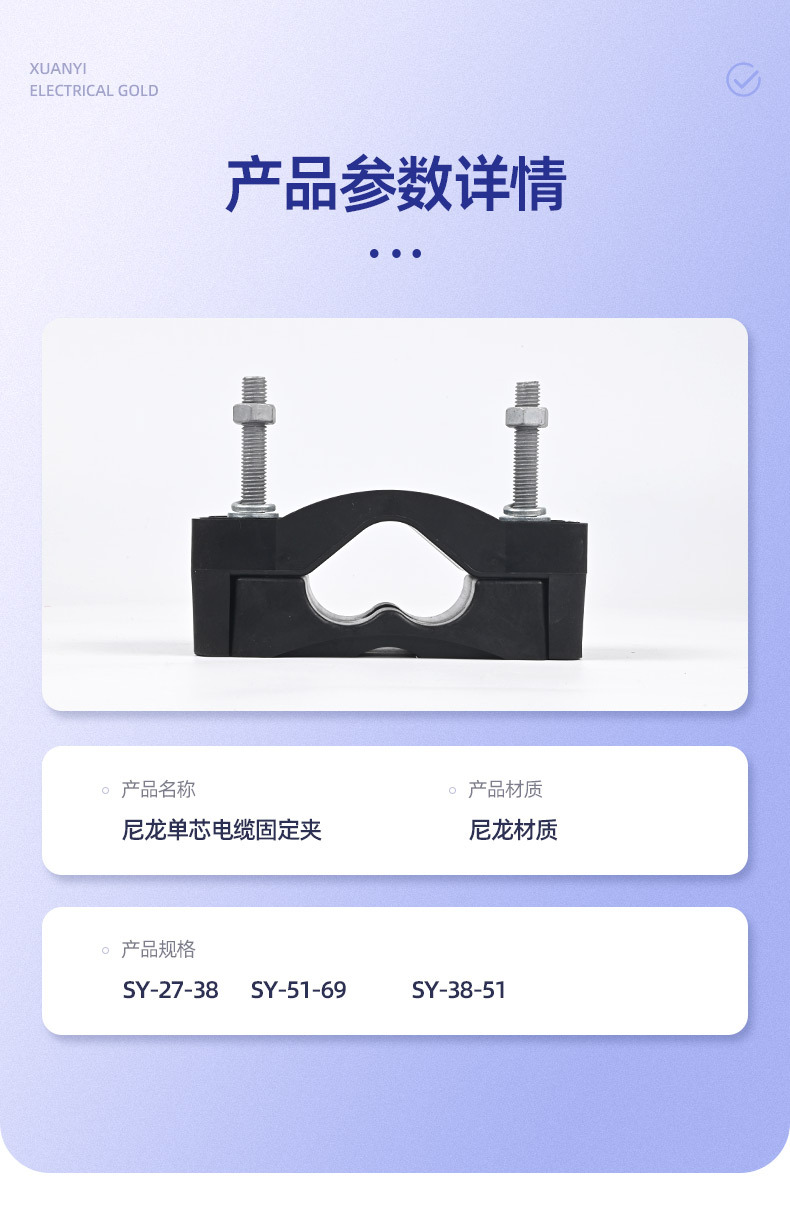 商品名称:SY型高压柜电缆夹单芯电缆线固定夹吊塔线阻燃尼龙电缆抱箍绝缘管