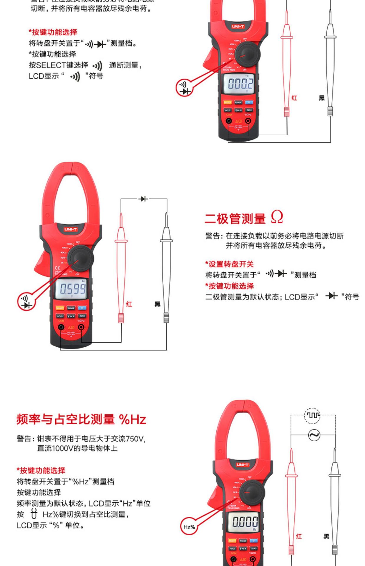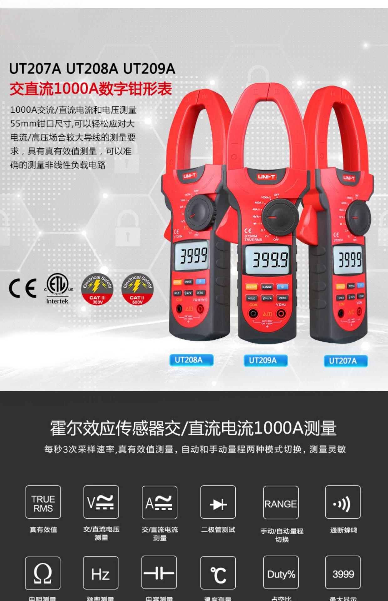 包装清单:1优利德 钳形万用表1000A交直流电流表双重绝缘电流数字钳形表