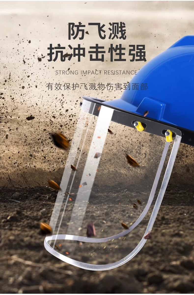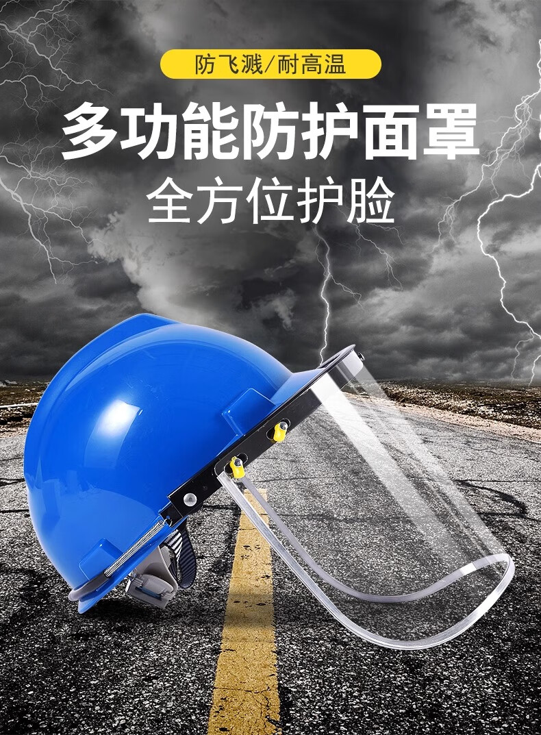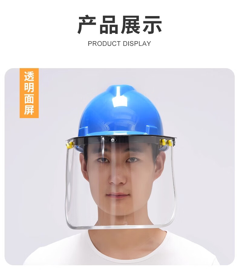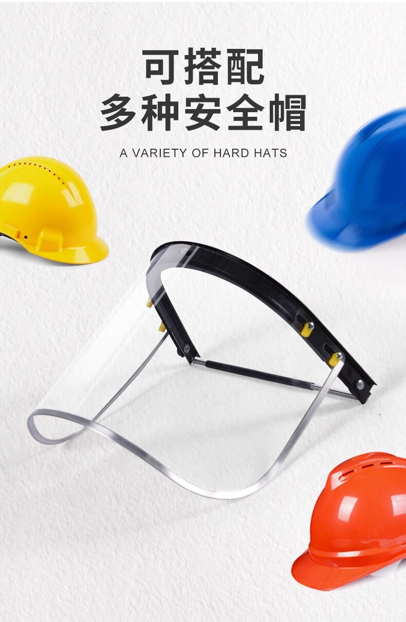 包装清单:1配安全帽防护面罩加厚PC全脸打磨防飞溅冲击耐高温劳保电焊面屏具