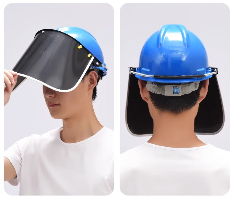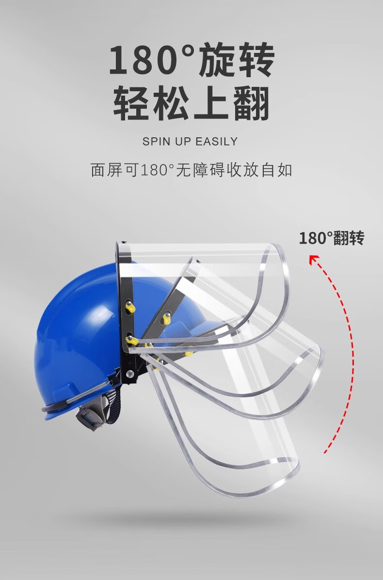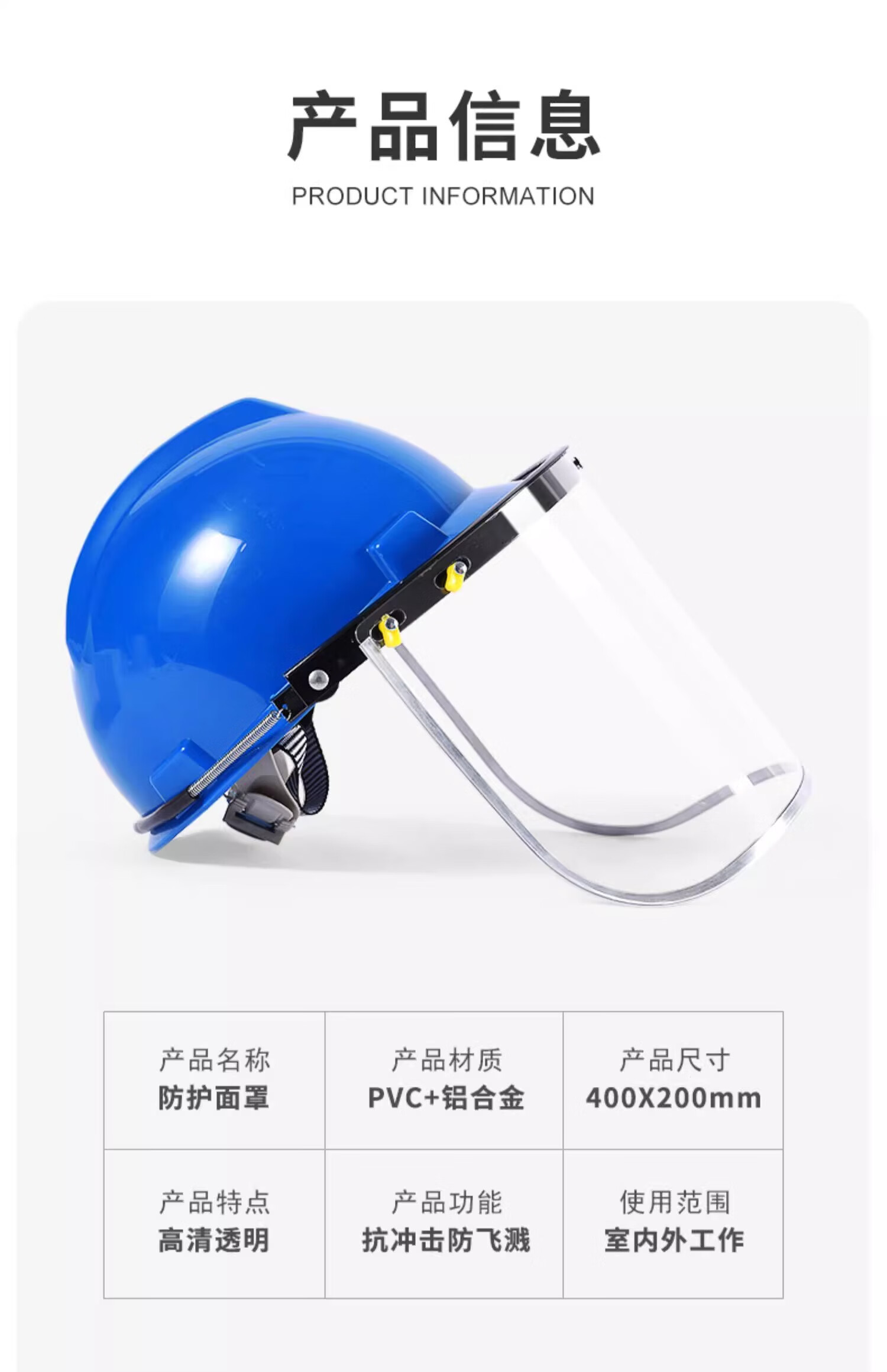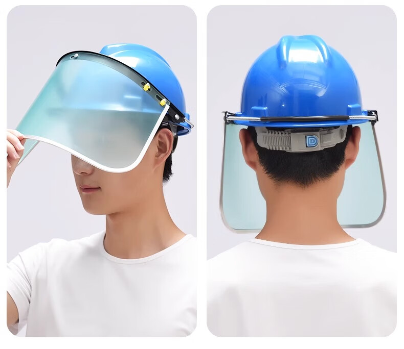 包装清单:1配安全帽防护面罩加厚PC全脸打磨防飞溅冲击耐高温劳保电焊面屏具