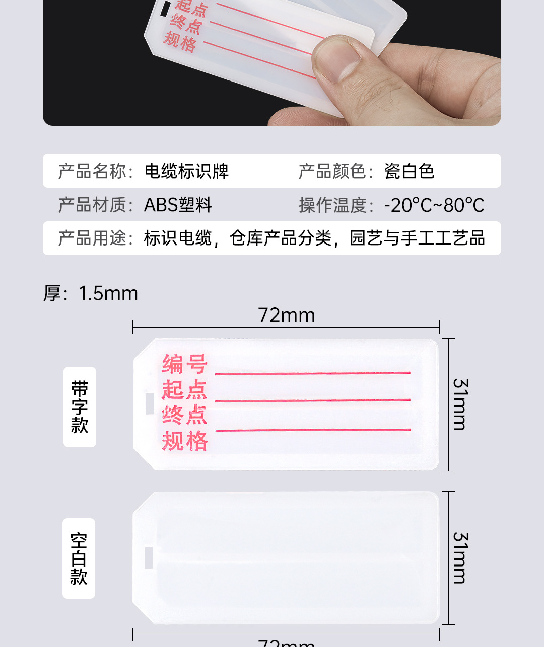 包装清单:1PVC电缆标识牌ABS塑料手写吊牌电缆光缆通讯防水标签铭牌植物挂牌