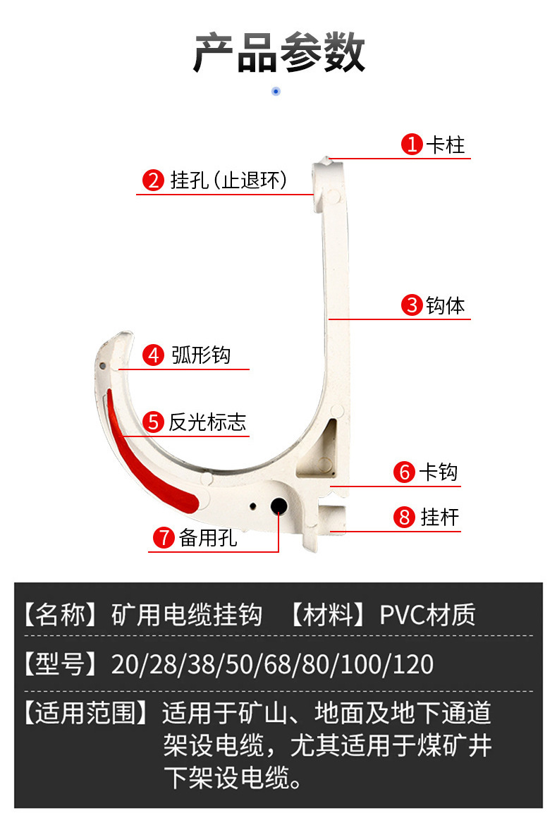 包装清单:1矿用电缆挂钩GL-pvc18-120阻燃绝缘耐磨塑料挂钩煤矿隧道U型挂钩