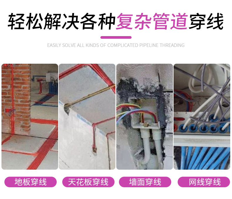 包装清单:1电工专用穿线神器穿线器引线器拉线网线引线穿线管钢丝穿管器