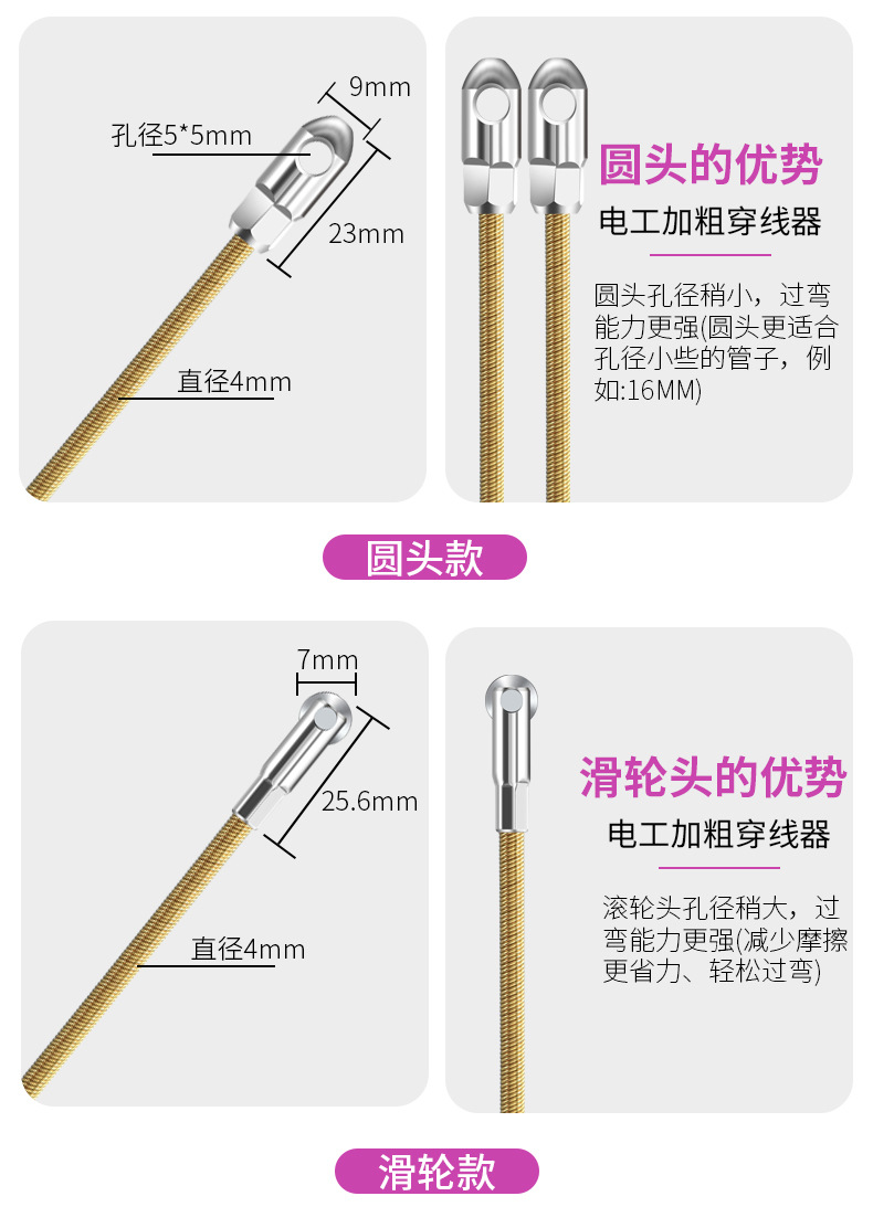 商品规格:6mm*100m 圆头/扁头/滑轮
