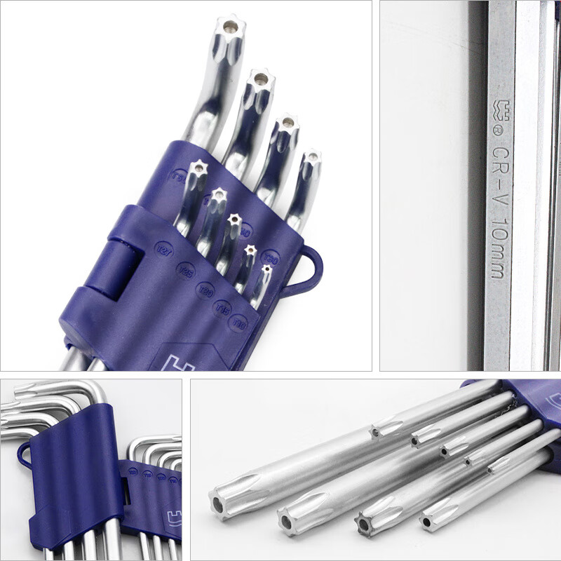 长城精工内六角扳手套装梅花内五花6角组套花型六角加长特长9件套 梅花内六角套装9件标准