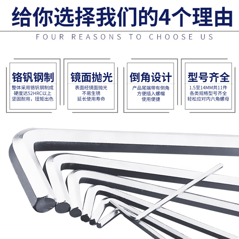 长城精工平头内六角3 4 5 6 7 8 10 12 14 17mm单个L型六方棱扳手