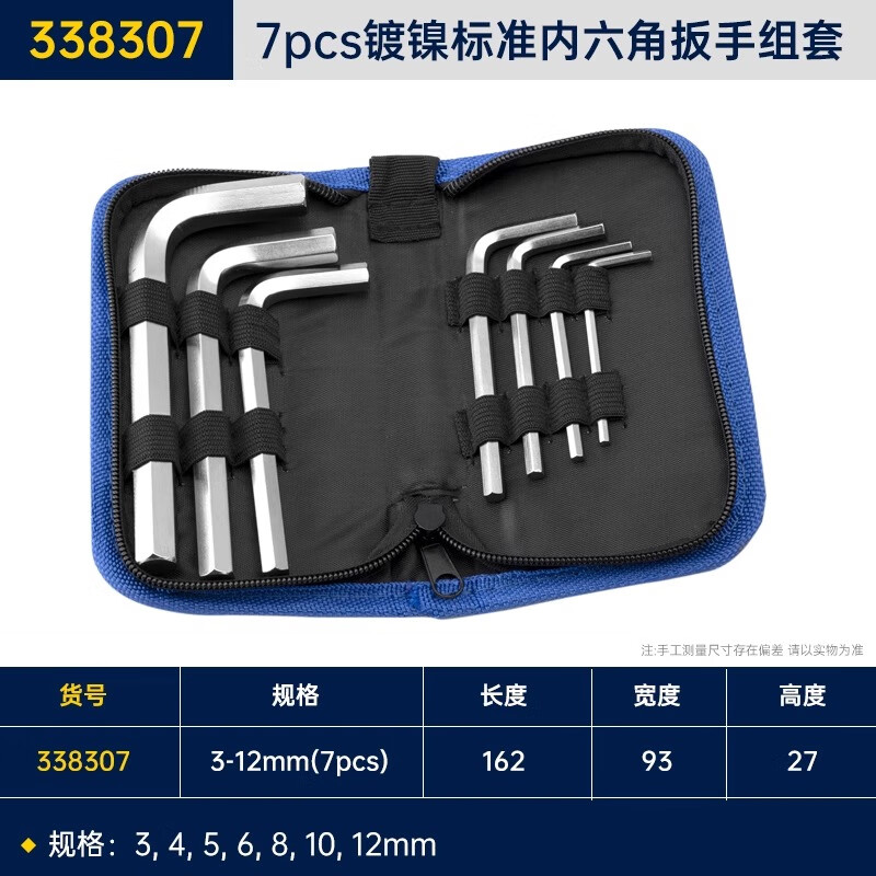 长城精工内六角扳手六角六棱螺丝刀牛津布内六方扳手工具组套3-19mm