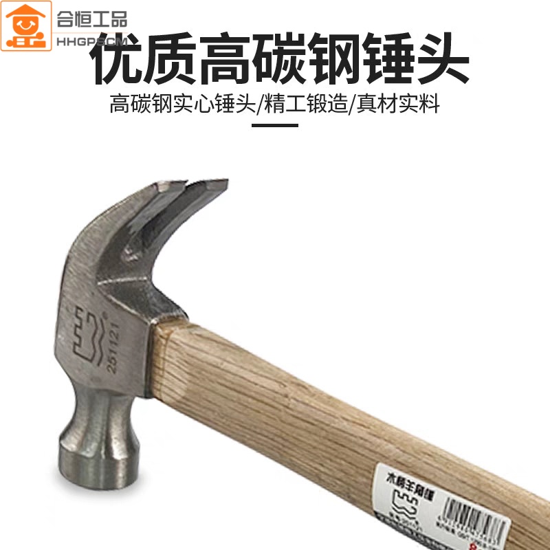 长城精工木柄羊角锤木匠工具家用工具木柄榔头木工锤1磅0.5磅1.5