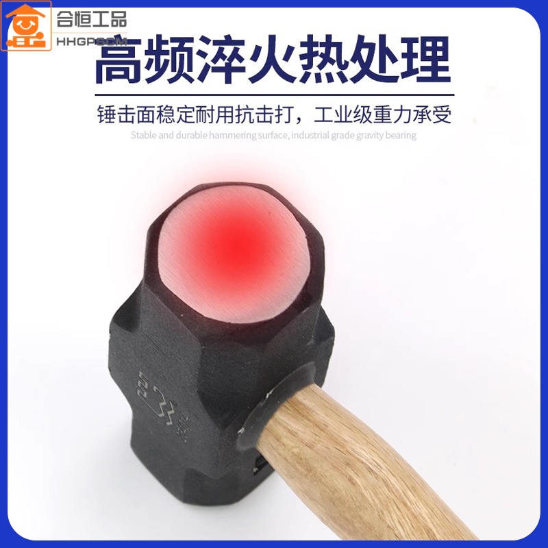 长城精工纯钢木柄八角锤子大铁锤重型榔头方头3/4/6/8/10/12/20磅