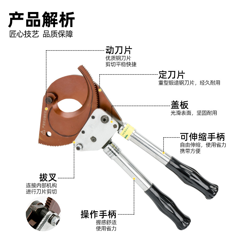 断线钳棘轮式电缆剪棘轮j25断线钳电缆剪刀齿轮剪棘轮剪刀