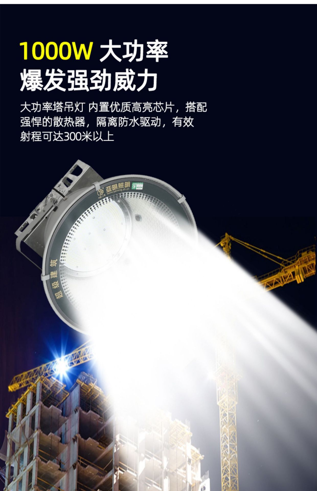包装清单:1led塔吊灯建筑之星射灯1000W大功率防水照明超亮工地探照灯射灯