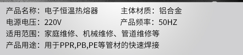 包装清单:1电子恒温热熔器ppr热熔器接水管热熔机20-63型家用维修恒温热熔器