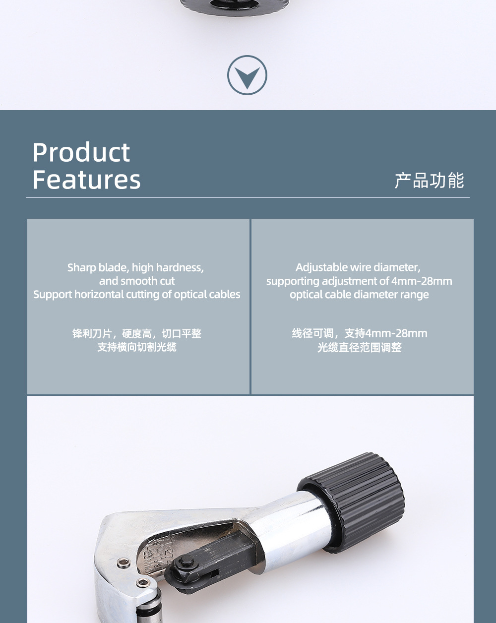 包装清单:1光缆开剥刀4-28mm横向开缆刀 开剥刀切割光缆外皮剥线钳