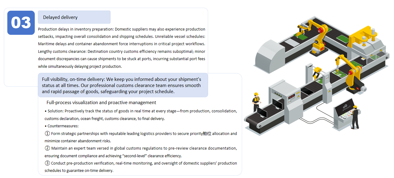 ➽Communication & Service: Assign dedicated bilingual (Chinese-English) project managers with 24/7 responsiveness, providing a single point of contact for all issues.