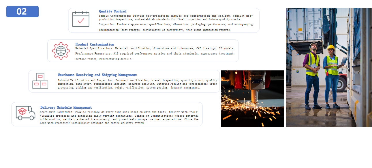 Procurement & Quality Control: Leverage robust supply chain resources for sourcing, conduct pre-shipment quality inspections, perform unified re-inspection upon warehousing, and accommodate third-party pre-shipment inspections.