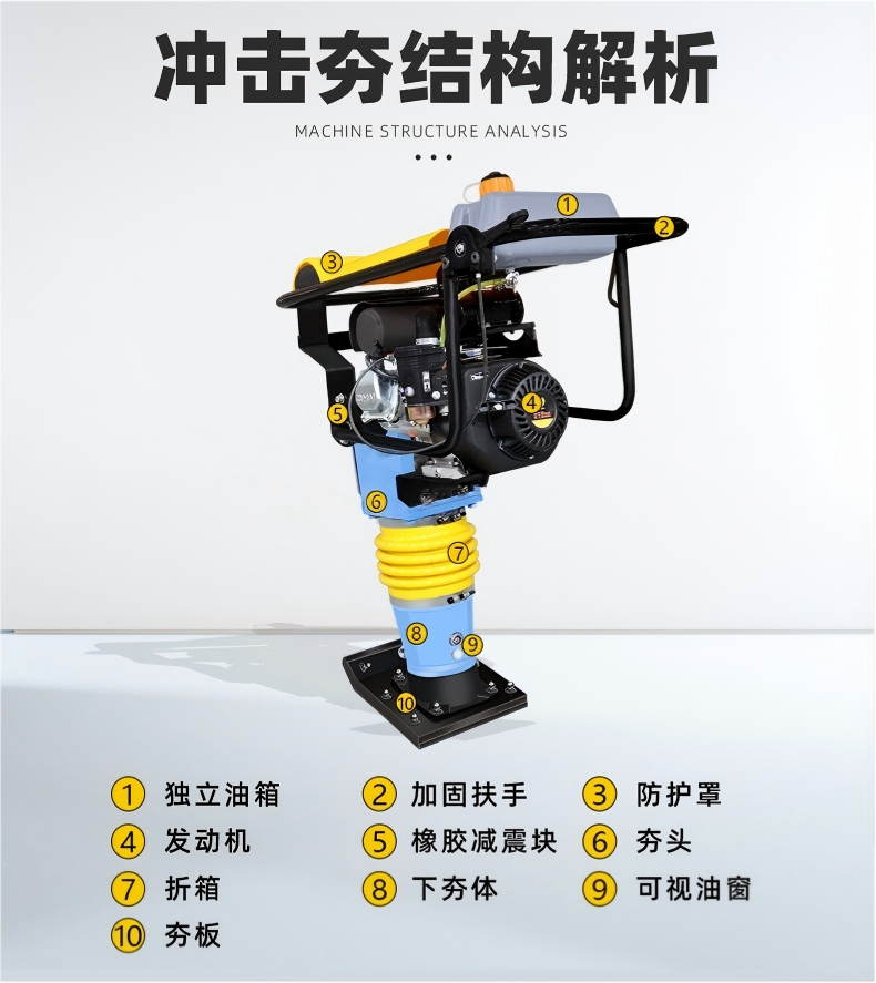 包装清单:1小型立式打夯机土路沟槽混凝土地基夯实机路面蹦蹦夯机汽油冲击夯