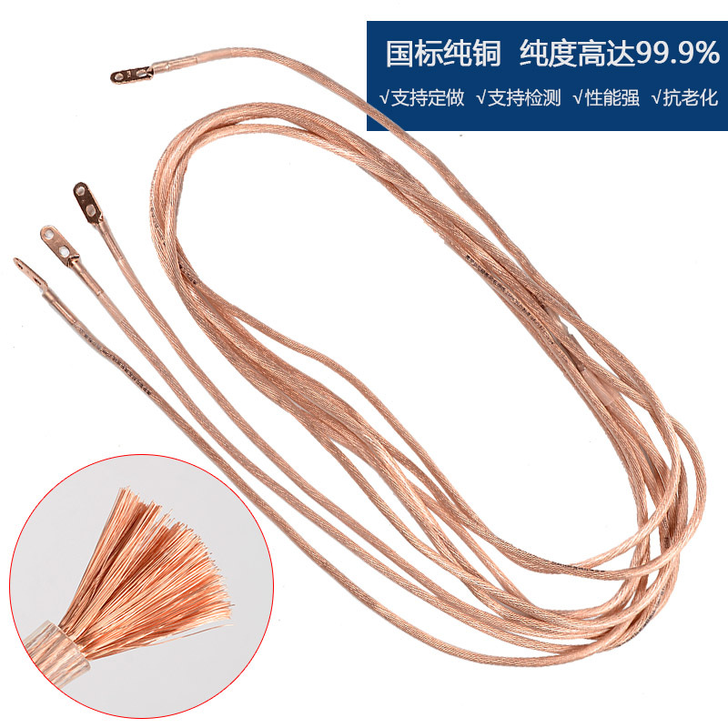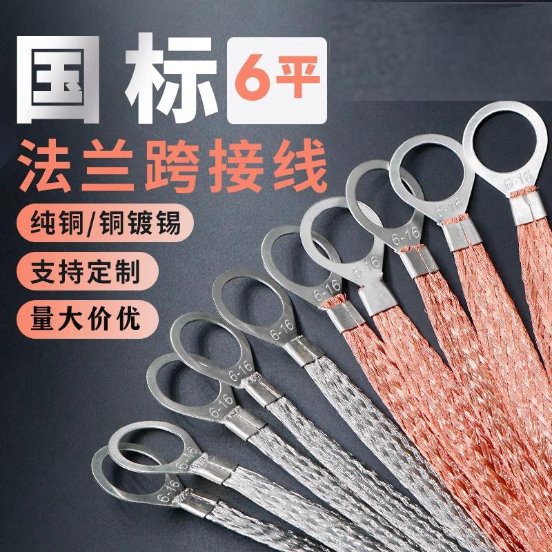 6平方法兰跨接线镀锡铜紫铜编织端子线防静电全铜导电桥架接地线