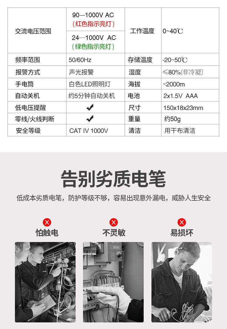 包装清单:1优利德非接触式测电笔高精度电工专用试电笔家用线路检测验电笔