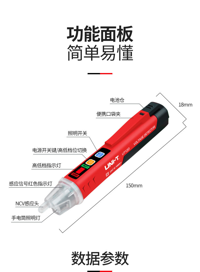 商品名称:优利德非接触式测电笔高精度电工专用试电笔家用线路检测验电笔