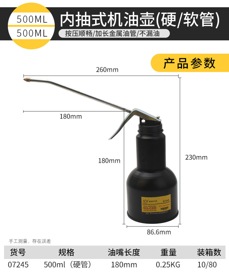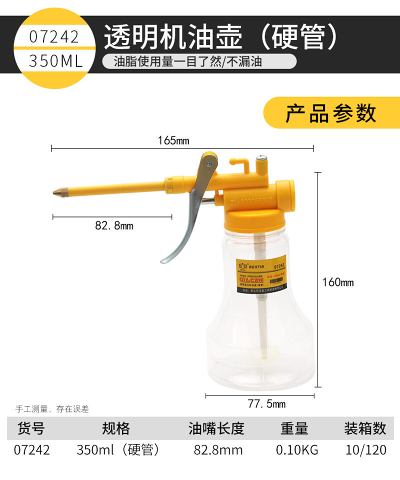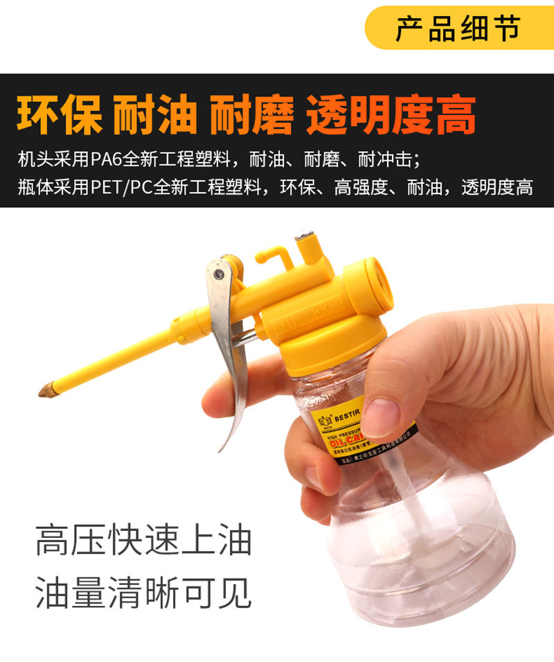 包装清单:1鹰之印 机油壶机油枪高压手动透明加油器长嘴注油器润滑齿轮油壶