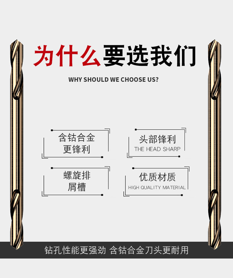 商品名称:含钴高速钢双头麻花钻头大全双刃不锈钢专用超硬钻铁打孔转头