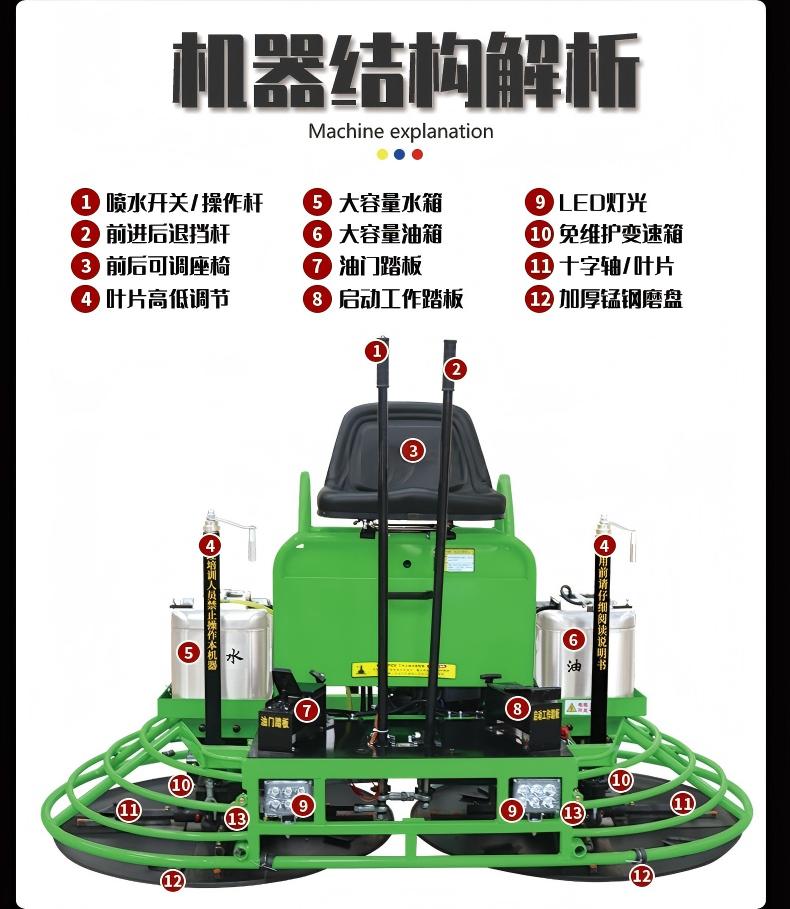包装清单:1100立式混凝土水泥路面座驾式抹光机提浆抛光 全自动驾驶型磨光机